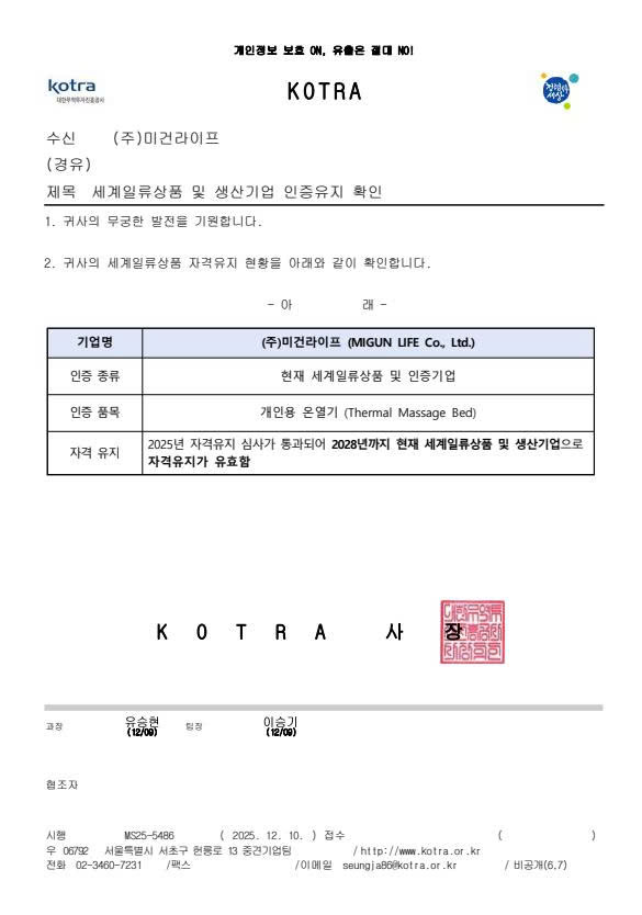 Ông Jang Hoon-cheol, Giám đốc điều hành của Migun Life Science, cho biết: “Việc được chọn là nhà sản xuất sản phẩm đẳng cấp thế giới trong 25 năm liên tiếp là kết quả của việc chính phủ chính thức công nhận năng lực công nghệ và khả năng cạnh tranh xuất khẩu của công ty chúng tôi”, đồng thời nói thêm, “Chúng tôi sẽ nâng cao vị thế toàn cầu của ngành công nghiệp chăm sóc sức khỏe Hàn Quốc thông qua đổi mới công nghệ và phát triển sản phẩm liên tục.”